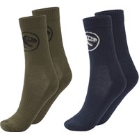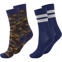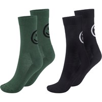 To par sporty strømper i rib. Det ene par strømper er i sort med recycled smiley's, mens det andet par er hvide med striber på skaftet.