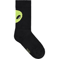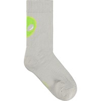 2-pak strømper i bomuld. Sokkerne har ribbet skaft og elastik foroven, og de er dejligt bløde at have på. Pakken indeholder et par sorte og et par grå sokker, begge med en grøn alien bagpå.