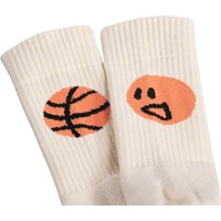 2-pak strømper i bomuld. Pakken indeholder et par sorte og et par cremefarvede sokker med orange basketballmotiv. Sokkerne har ribbet skaft og elastik foroven, og de er dejligt bløde at have på.