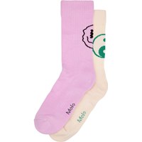 2-pak strømper i økologisk bomuld. Sokkerne har ribbet skaft og elastik foroven, og de er dejligt bløde at have på. Pakken indeholder et par armygrønne sokker med et arkadespil-motiv og et par gule sokker med et pixel smil-motiv.