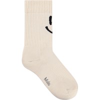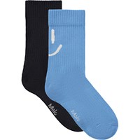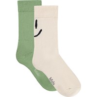 2-pak strømper i bomuld. Pakken indeholder et par lilla og et par cremefarvede sokker med smil. Sokkerne har ribbet skaft og elastik foroven, og de er dejligt bløde at have på.