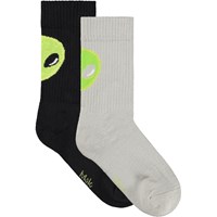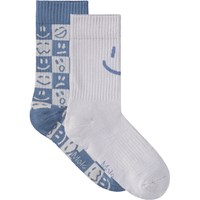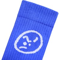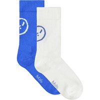 2-pak strømper i bomuld. Sokkerne har ribbet skaft og elastik foroven, og de er dejligt bløde at have på. Pakken indeholder et par sokker i stærk blå med et surt ansigt bagpå i hvidt, samt et par hvide sokker med surt ansigt bagpå.
