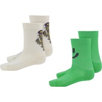 To par sporty strømper i rib. Det ene par strømper er hvide med en cool kaktus på hælene, mens det andet par er grønne med et smile-tag forrest på skaftet