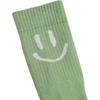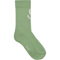 2-pak strømper i bomuld. Pakken indeholder et par grønne og et par cremefarvede sokker med smil. Sokkerne har ribbet skaft og elastik foroven, og de er dejligt bløde at have på.