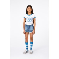 2-pak finstrikkede knæstrømper i blød bomuldsblanding med ribbet skaft og elastik foroven. Pakken indeholder et par blå strømper med lyseblå striber og et par lyserøde strømper med et grønt kløver-mønster.