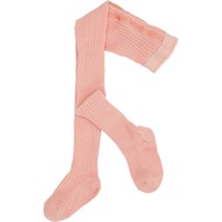 Lyserøde finstrikkede ribstrømpebukser i økologisk bomuld med elastik i taljen for en perfekt pasform.