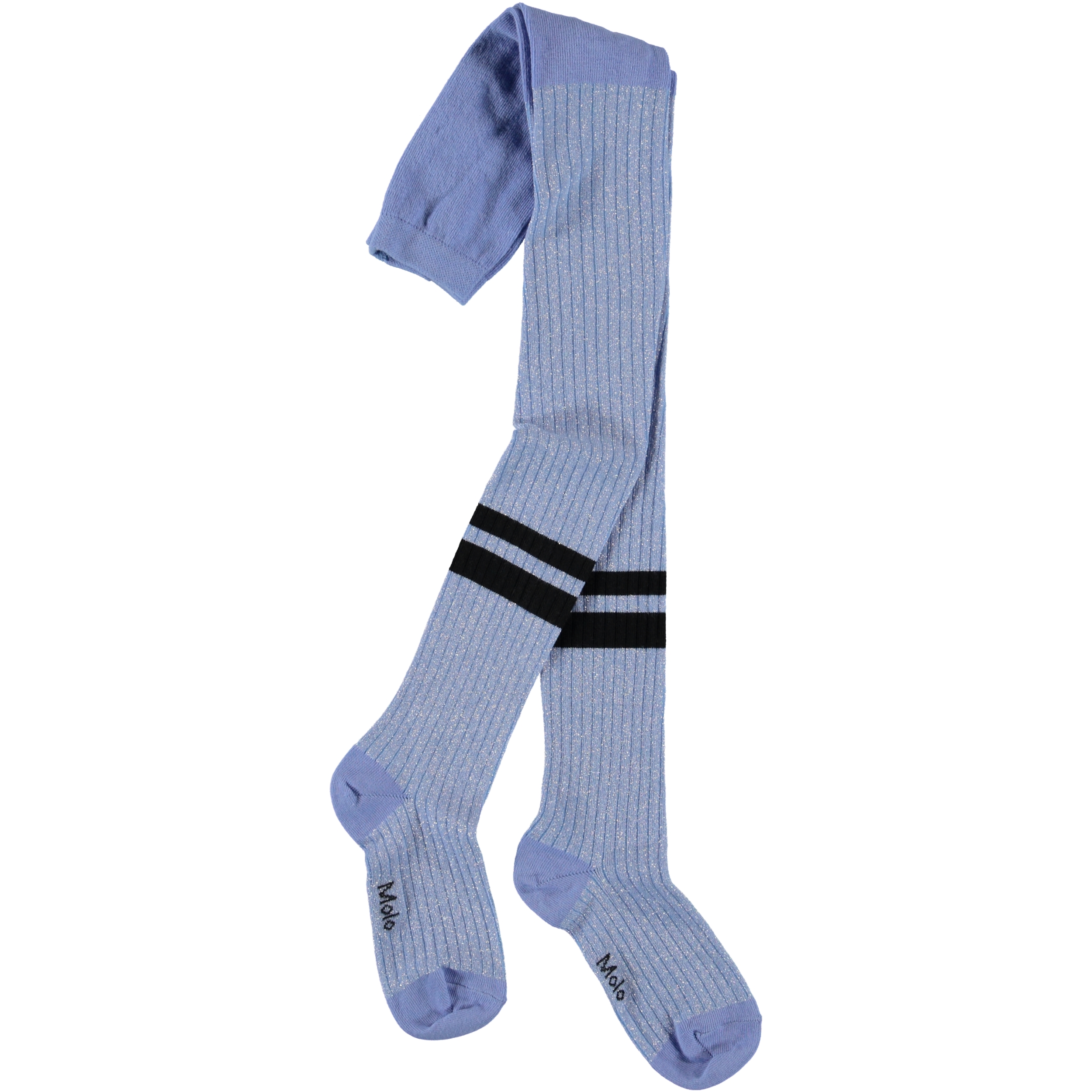 Lyse lilla rib strømpebukser med sporty sorte striber. Strømpebukserne har en elastisk talje for en god komfort.