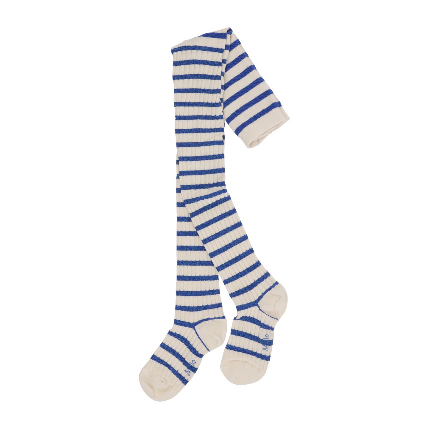 Hvide og blå breton stribede strømpebukser med glimmer.