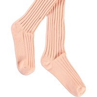Lys orange finstrikkede ribstrømpebukser lavet af bomuld. Elastik i taljen sikrer en behagelig pasform.