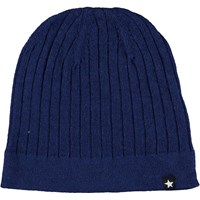 Mørkebrun baby strikhue i rib. Huen er dejlig blød og indeholder cashmere.