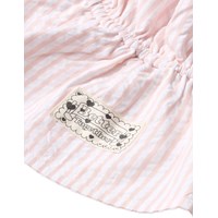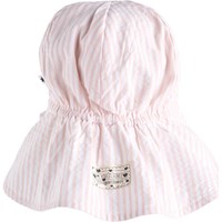 Lyserød solhat med striber i blød, økologisk bomuld til de mindste. Har skygge foran og ekstra længde bagtil for optimal beskyttelse af ansigt og nakke.