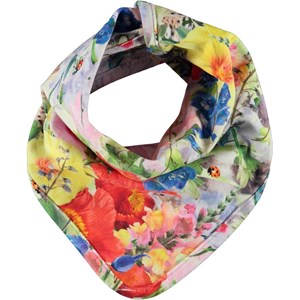 Hagesmæk med print af blomster. Hagesmækken lukkes med trykknap i nakken. Certificeret af Ecocert Greenlife, certifikationsnr. 197496.
