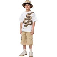 Bøllehat i beige med slangeprint, fremstillet i bomuld.