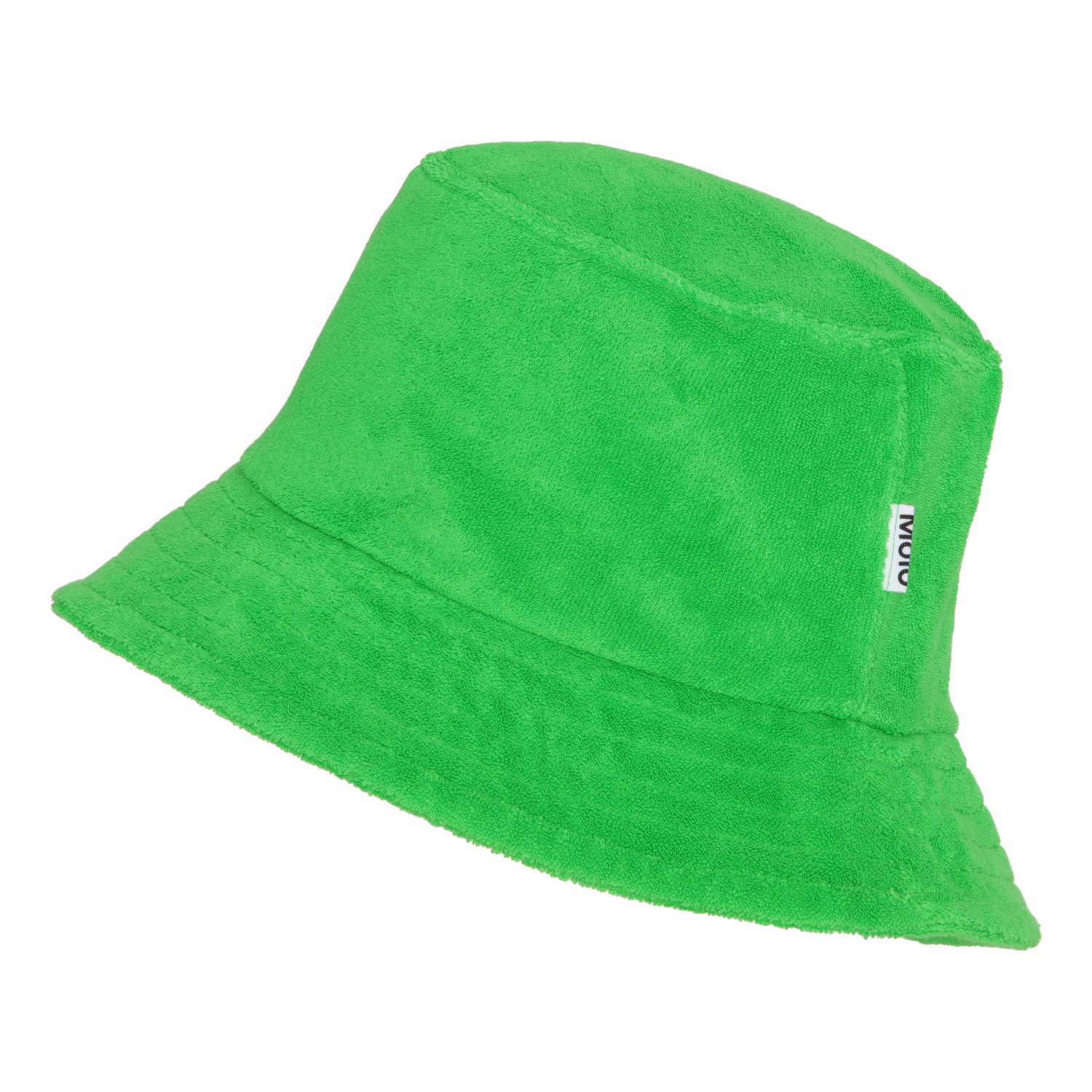 Grøn bøllehat i blød bomuldsfrotté og nedadvendt skygge.