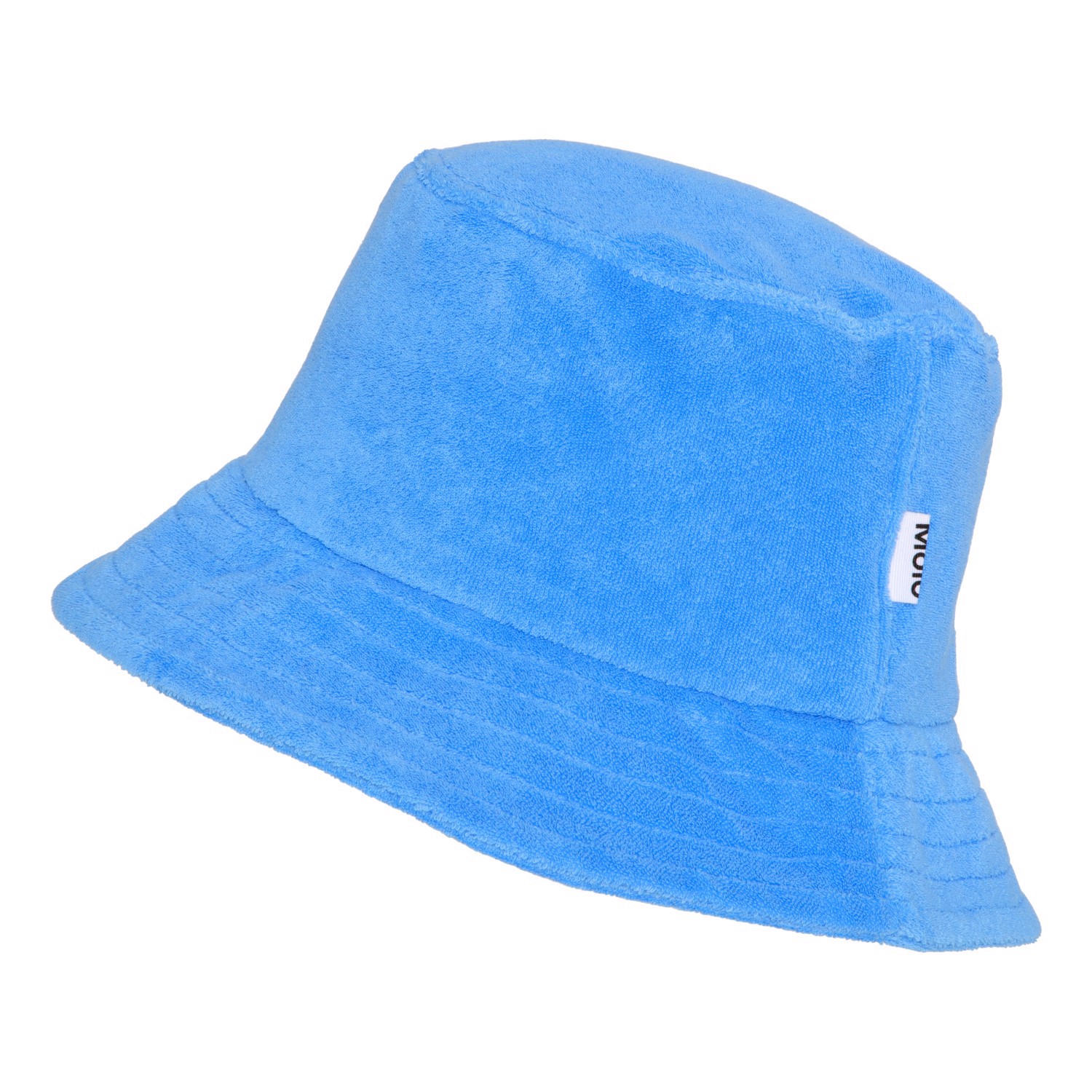 Blå bøllehat i blød bomuldsfrotté og nedadvendt skygge.