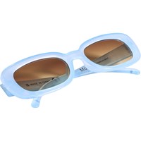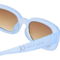Oval solbrille i lyseblå med tonede glas og blank overflade. UV-beskyttelse kategori 2 – blokerer 57-82 % af solens skadelige stråler. Perfekt til dage med let skydække eller mild sol. Passer til aldersgruppen 7 til 16 år.