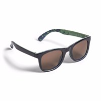 Klassiske solbriller i sort med grønne og blå splash, tonede glas, blank overflade og 100% UV-beskyttelse. Passer til aldersgruppen 7 til 16 år.
