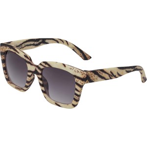 Brede tigerstribede firkantede solbriller, med sorte glas og semi-brede brillestænger. Molo's solbriller har 100% UV beskyttelse.