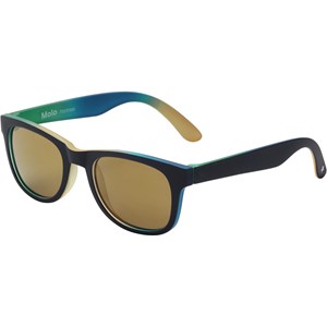 Klassiske solbriller i mørkeblå med flerfarvet inderside og brune linser. Molo's solbriller har 100% UV beskyttelse. Størrelse 3-6 år.