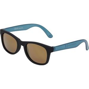 Klassiske solbriller i sort med brune glas og blå brillestænger. Molo's solbriller har 100% UV beskyttelse.