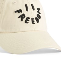 Klassisk kasket i beige med et broderet smilende ansigt og teksten 'Freedom' broderet som mund. Kasketten har let bøjet skygge og er regulerbar i nakken. Vejledende størrelsesguide: S/M = 53cm, M/L= 56cm