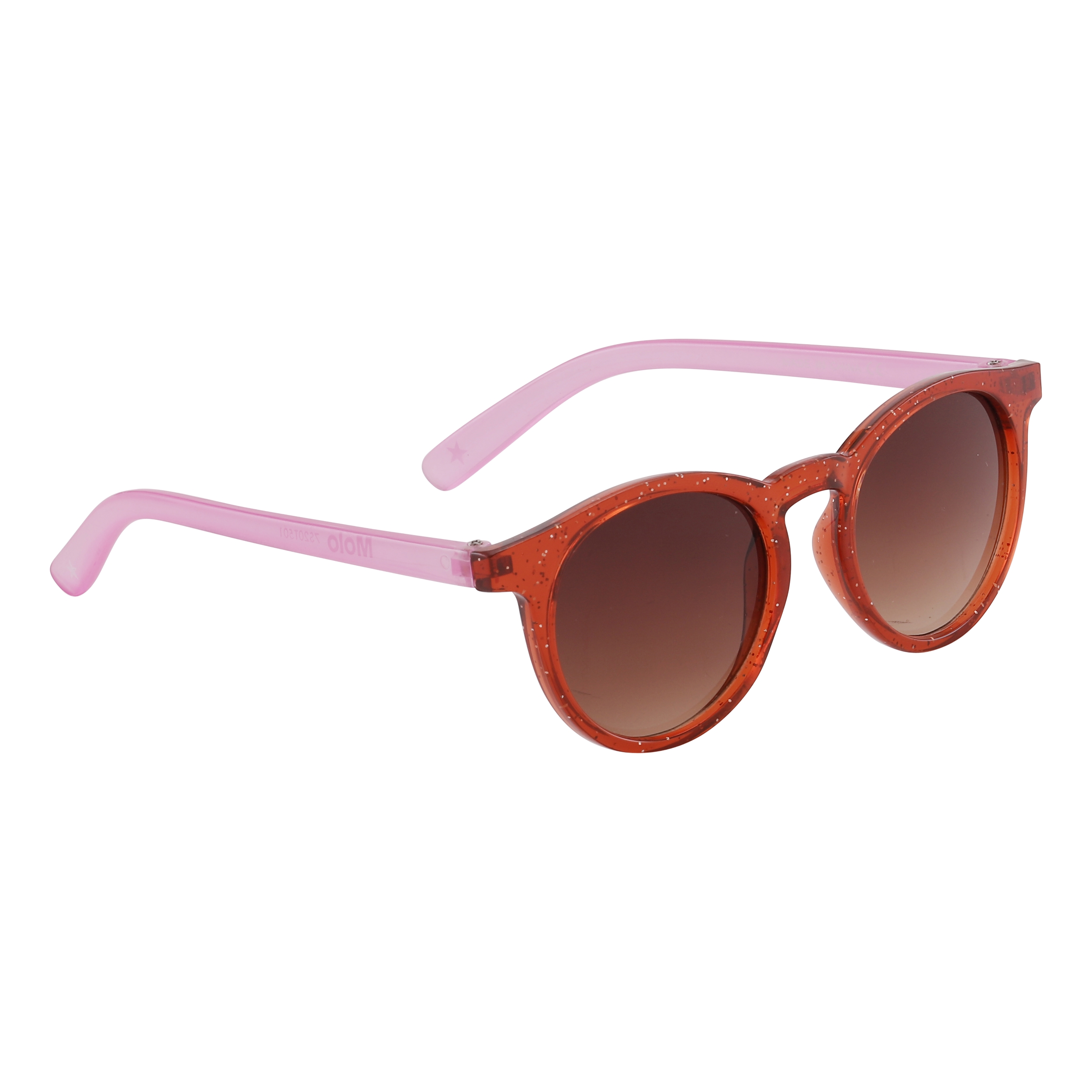 Tofarvede solbriller i rød og pink. Solbrillerne har en rund facon med mørke linser. Molo's solbriller har 100% UV beskyttelse.