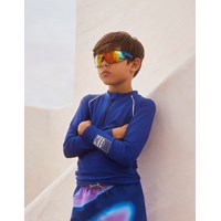 Sporty solbriller i graduerende blå og mørkerøde nuancer med orangeblå spejllinser. Molo's solbriller har 100% UV-beskyttelse. Størrelse 7-16 år.