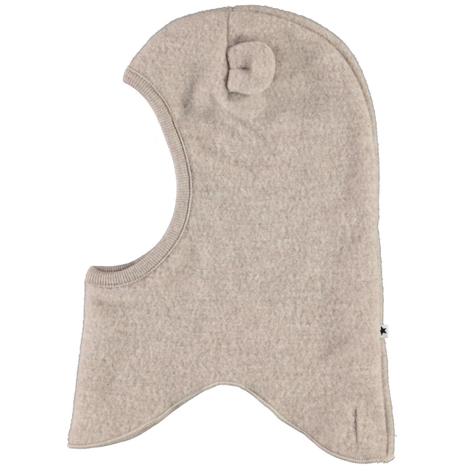 Beige elefanthue i blød uld med påsyede små ører. Elefanthuen varmer dejligt på skuldre og hals.