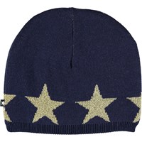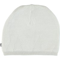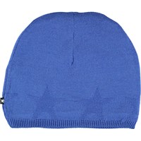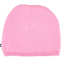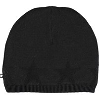 Grå hue i en blød uldmix med indstrikkede stjerner og ribkant forneden.