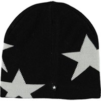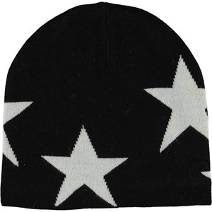 Sort hue i en blød uldmix med indstrikkede stjerner og ribkant forneden.