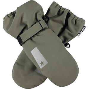 Grønne vinterhandsker til de kolde dage. På indersiden af handsken og ved tommelfingeren er der sorte gummibelægninger, der giver en god gribehåndflade. Handskerne egner sig godt til alt slags vejr og er perfekte både til hverdagen eller skiferien. Derudover matcher handskerne med Molo’s overtøj i farver og print. Skaftet på denne model er en smule længere end på Mitzy, så der ikke kommer en åbning ved jakkeærmet. Bemærk at str. 1-2 år har lynlås i skaftet i stedet for velcrolukning.