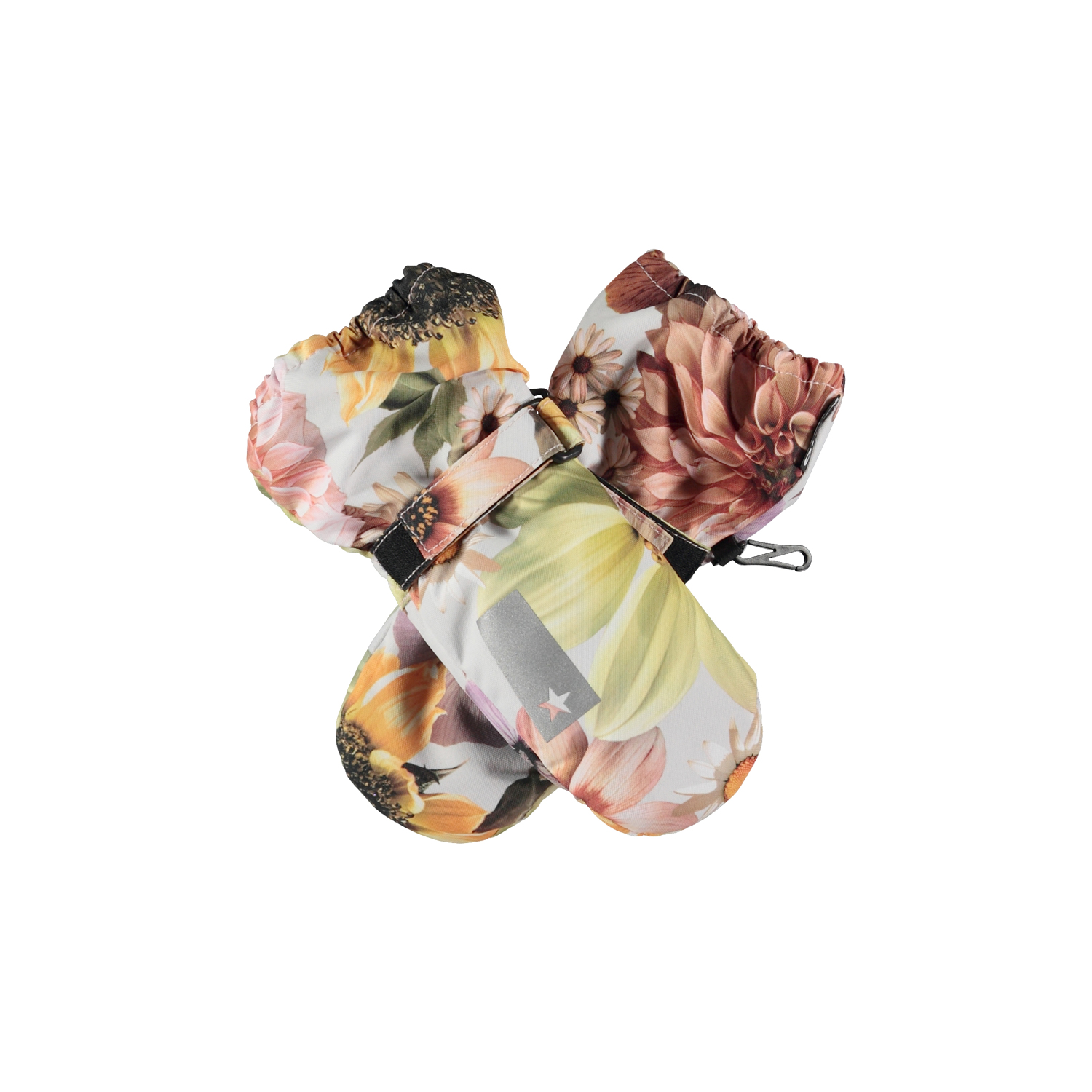 Lyserøde vinterhandsker med print af farverige blomster. På indersiden af handsken og ved tommelfingeren er der sorte gummibelægninger, der giver en god gribehåndflade. Handskerne egner sig godt til alt slags vejr og er perfekte både til hverdagen eller skiferien. Derudover matcher handskerne med Molo’s overtøj i farver og print. Skaftet på denne model er en smule længere end på Mitzy, så der ikke kommer en åbning ved jakkeærmet. Bemærk at str. 1-2 år har lynlås i skaftet i stedet for velcrolukning.
