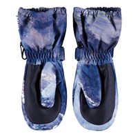 Blå vandtætte og åndbare luffer med bjergprint, fleecefoer og 3M™ Thinsulate™ isolering. Lufferne har en refleks på forsiden, samt elastik og justerbar velcro ved håndleddet. Bemærk, at skaftet på denne model er en smule længere end på Mitzy, således at der ikke kommer en åbning ved jakkeærmet.