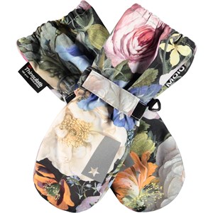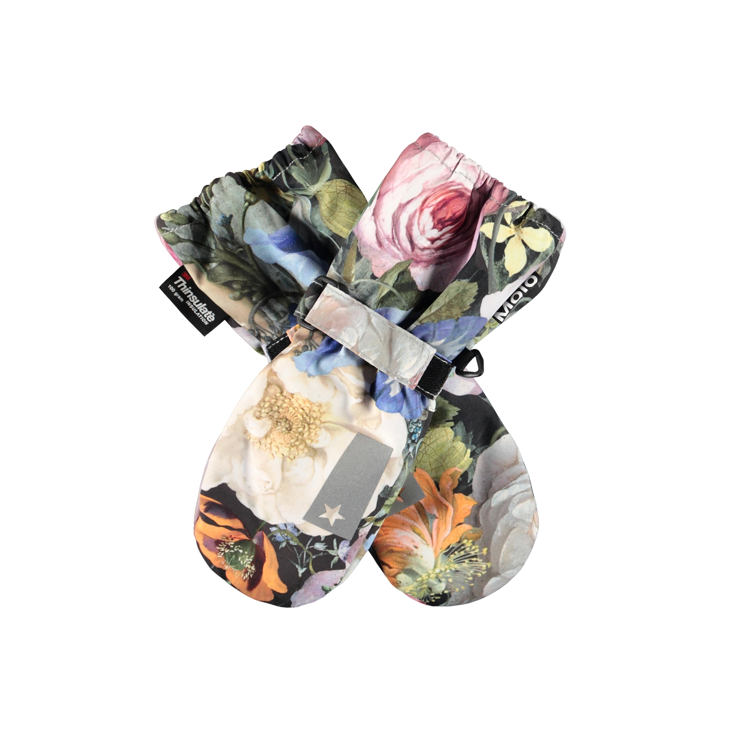 Vandtætte og åndbare luffer med print af blomster. Lufferne har med 3M™ Thinsulate™ isolering, stjernerefleks på forsiden, samt elastik og justerbar velcro ved håndleddet. Ydermaterialet er fremstillet af 45% recycled polyester, 3M™ Thinsulate™ foret er fremstillet af 78% recycled polyester og inderstoffet af 100% recycled polyester. Bemærk, at skaftet på denne model er en smule længere end på Mitzy, således at der ikke kommer en åbning ved jakkeærmet. Dette produkt har en vandafvisende PFC-friimprægnering (indeholder f.eks. ikke PFOS, PFOA og lignende). Vandsøjletryk: 10.000 mm. Åndbarhed: 8.000 g/m2/24t. Bemærk at str. 1-2 år har lynlås i skaftet i stedet for velcrolukning.