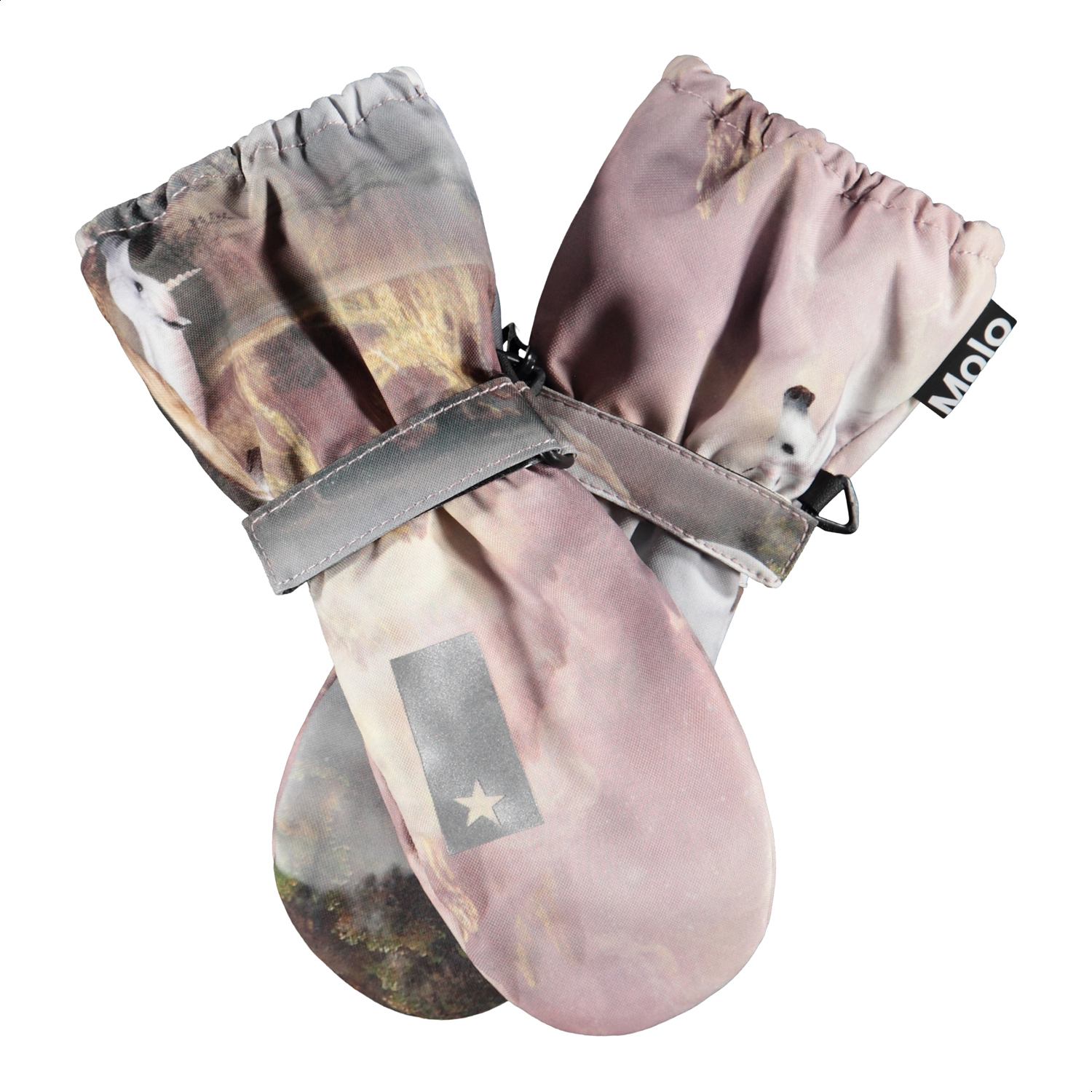 Rosa vandtætte og åndbare luffer med enjørningprint, fleecefoer og 3M™ Thinsulate™ isolering. Lufferne har en refleks på forsiden, samt elastik og justerbar velcro ved håndleddet. Bemærk, at skaftet på denne model er en smule længere end på Mitzy, således at der ikke kommer en åbning ved jakkeærmet.