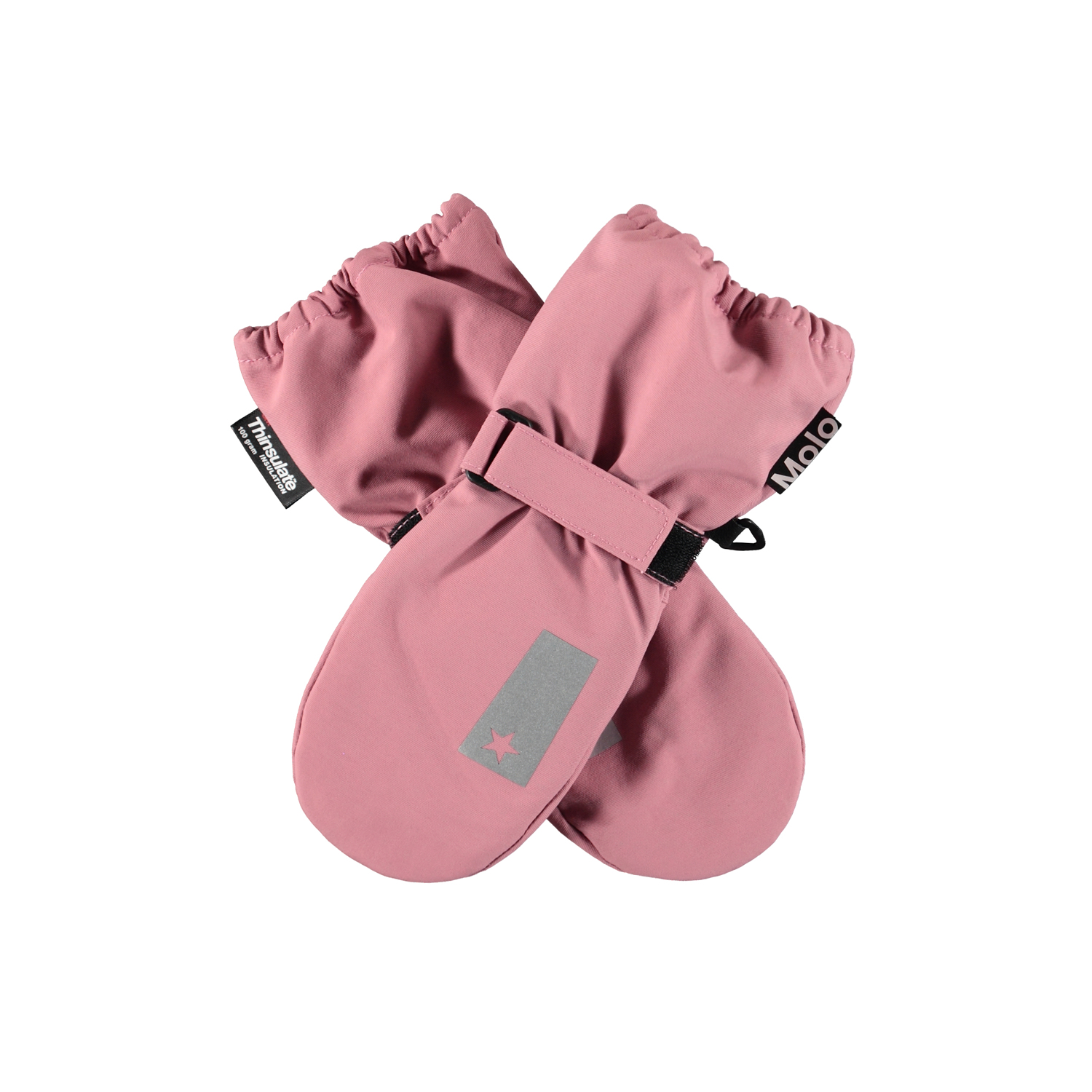 Rosa vandtætte og åndbare luffer med med 3M™ Thinsulate™ isolering. Lufferne har stjernerefleks på forsiden, samt elastik og justerbar velcro ved håndleddet. Ydermaterialet er fremstillet af 59% recycled nylon, 3M™ Thinsulate™ foret er fremstillet af 78% recycled polyester og inderstoffet af 100% recycled polyester. Bemærk, at skaftet på denne model er en smule længere end på Mitzy, således at der ikke kommer en åbning ved jakkeærmet. Dette produkt har en vandafvisende PFC-friimprægnering (indeholder f.eks. ikke PFOS, PFOA og lignende). Vandsøjletryk: 10.000 mm. Åndbarhed: 8.000 g/m2/24t. Størrelserne 1-2 år har desuden lynlås i skaftet.