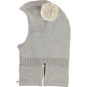Grå strik elefanthue i uldmix. Huen har små faux fur ponponer, som ører.
