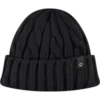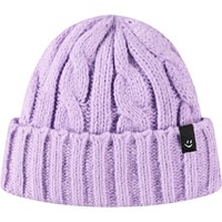 Lilla hue i kabelstrik med ombuk.