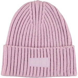 Kabelstrikket rosa hue i uldmix med ombuk forneden og Molo's logo på fronten.