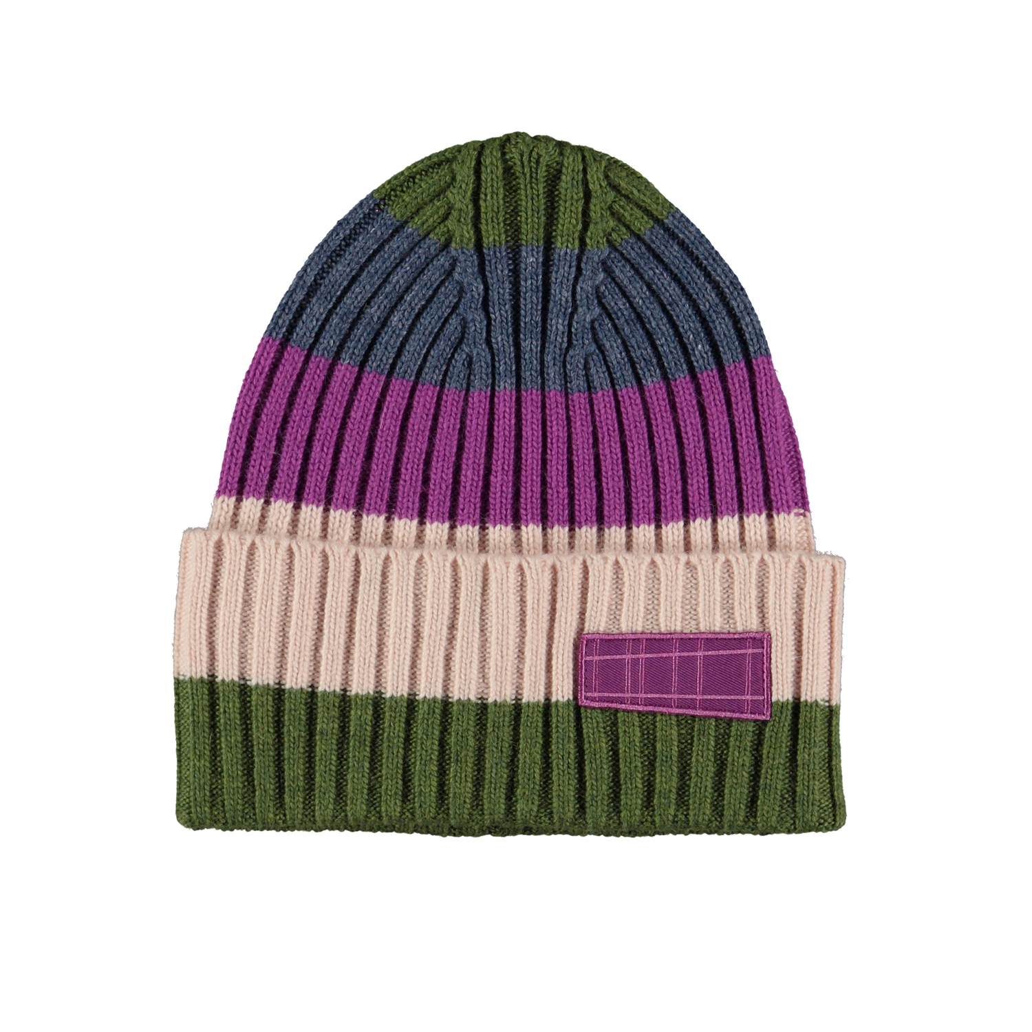 Kabelstrikket stribet hue i uldblanding med ombuk forneden og Molo''s logo på fronten.