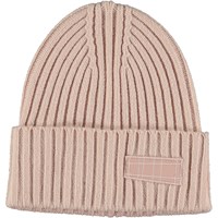 Kabelstrikket mørkegrå hue i uldblanding med ombuk forneden og Molo''s logo på fronten.