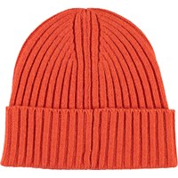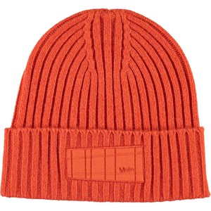 Kabelstrikket orange hue i uldmix med ombuk forneden og Molo's nye label på fronten.