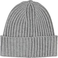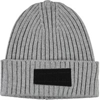 Kabelstrikket grå hue i uldmix med ombuk forneden og Molo's logo på fronten.