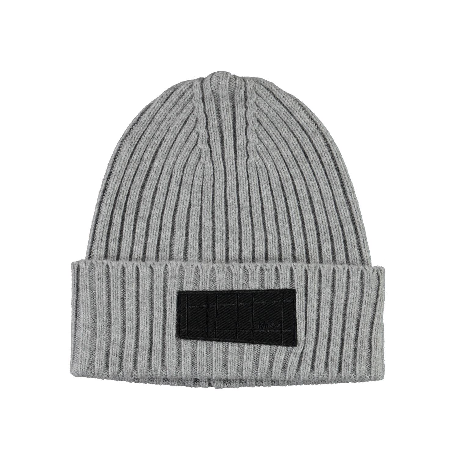 Kabelstrikket grå hue i uldmix med ombuk forneden og Molo's logo på fronten.
