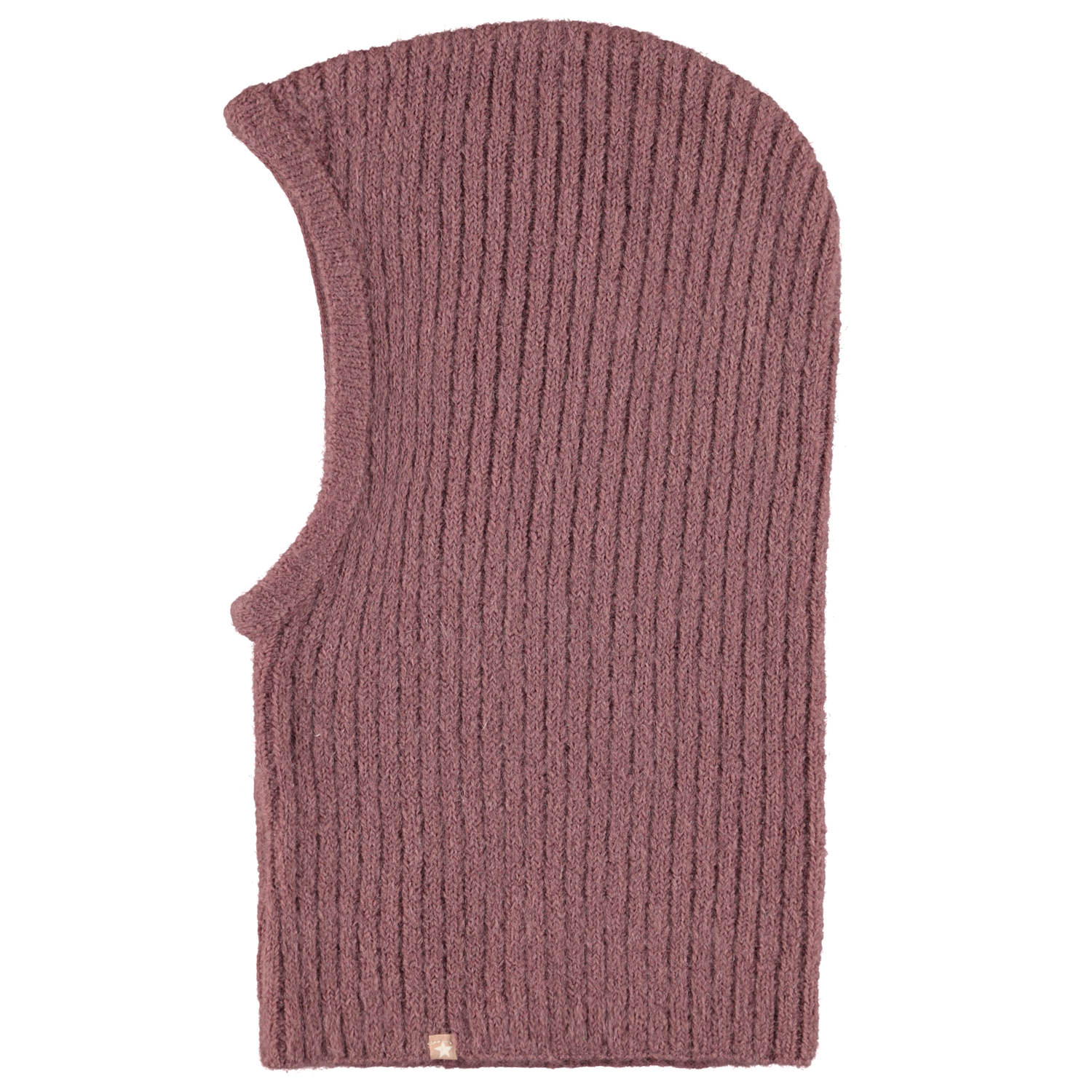 Rosa balaclava strik hue, som både varmer ansigt, ører, kinder og hals.