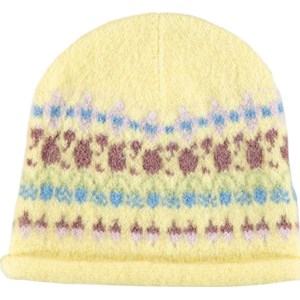 Gul strik hue med alpaca uld. Huen har et fint mønster.