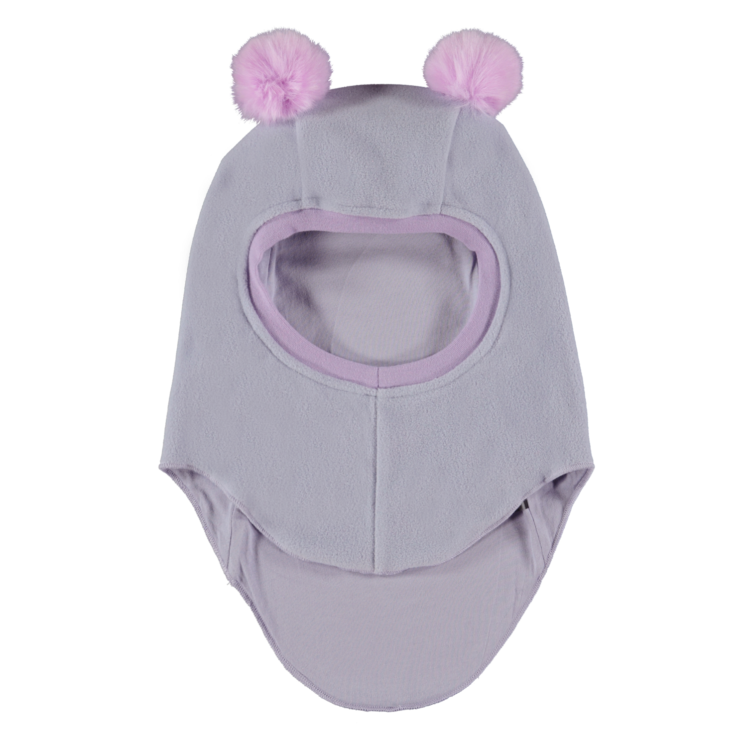 Lilla elefanthue med pomponer. Huen er fremstillet i blød fleece og er perfekt til at holde både hals og ører varme på kølige dage.