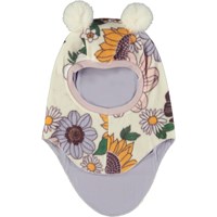 Mørkegrøn elefanthue med pomponer. Huen er fremstillet i blød fleece og er perfekt til at holde både hals og ører varme på kølige dage.