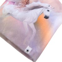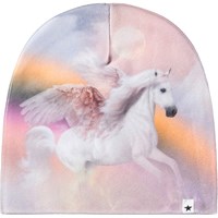 Multifarvet sæt med hue og fingerhandsker med enhjørning og regnbue. Str. S/M 3-6 år. Str. M/L 7-12 år.