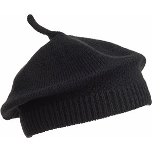 Flot sort alpehue i genanvendt polyester. Huen har ribkant og detalje i toppen.